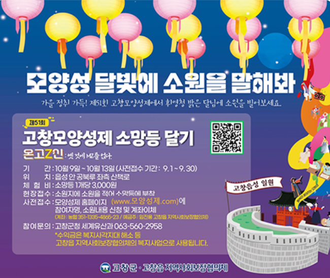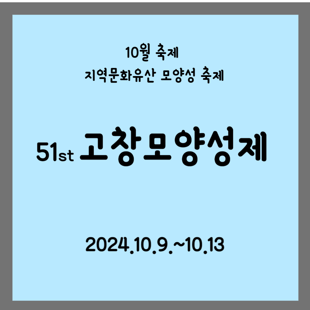 고창 대표축제 모양성제가 10월 9일 ~ 10월 13일 5일간 열립니다