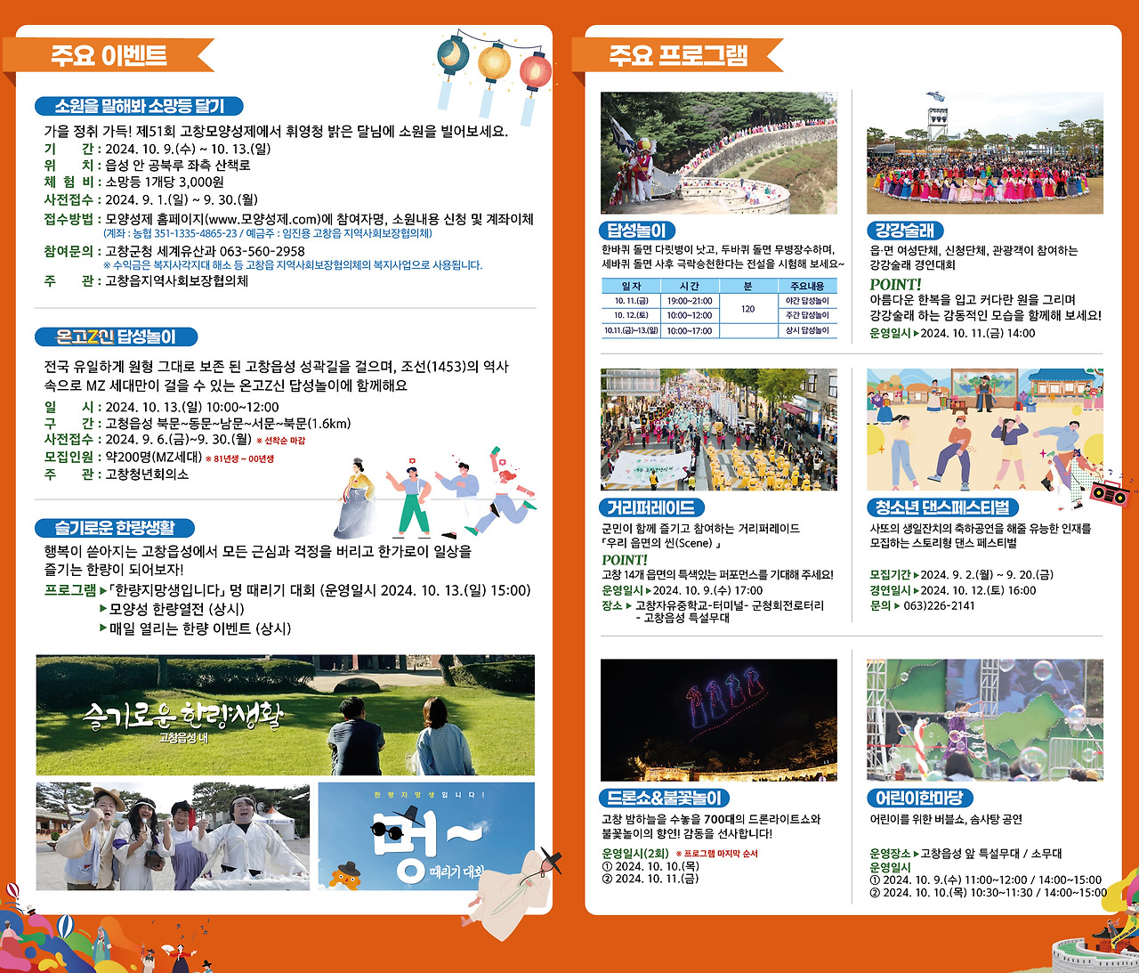 놓치면 아쉬운 다양한 체험 프로그램과 야간 프로그램도 있으니 10월 가을날 고창 모양성제에 함께 하세요